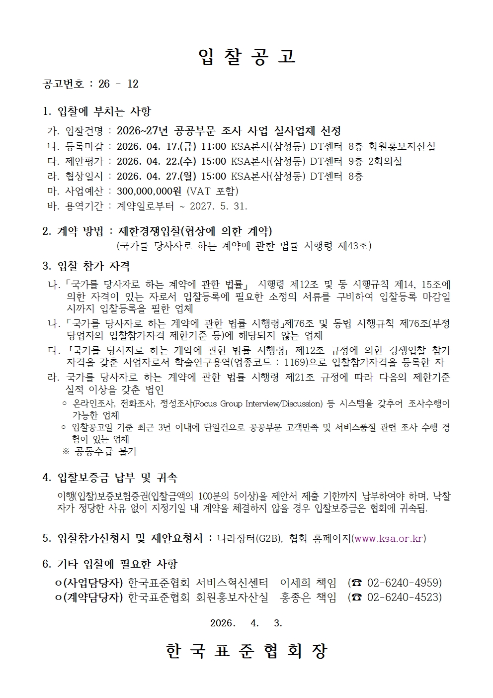 (입찰공고)2026~27년 공공 부문 조사 사업 실사업체 선정.hwp